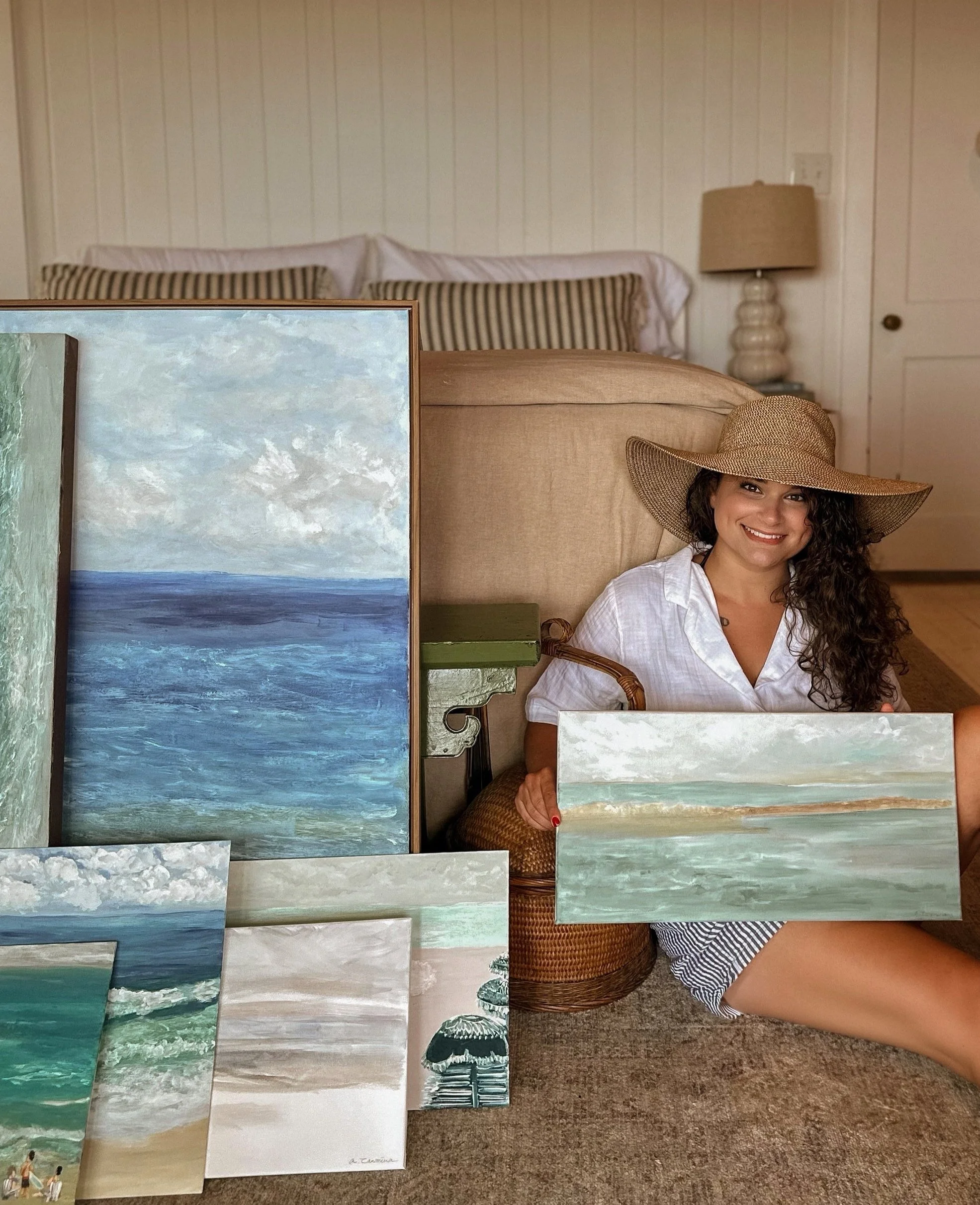 Alexandra Carmina, Fine Artist based in PA and a proud Momma to my little boy. I feel most at peace when I'm able to capture the beauty of the outdoors on canvas. My favorite medium to work with is acrylic. Art has always been a way for me to express my emotions and connect with others, but it's also been a way for me to ground myself in nature. There's something about immersing myself in the natural world that brings me back to center and helps me feel more balanced.
